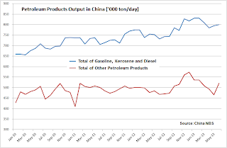 Crude oil processing by Chinese refineries rose 10.8% on year to 39.60 million tonnes in June, while petroleum products inventories as of end-June increased 2.1% from a month ago to 29.75 million tonnes. The inventory level also rose from a year earlier for the first time since January.
